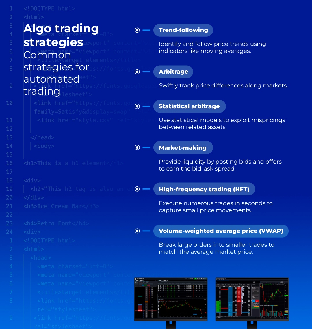 - Common strategies include trend-following, arbitrage, market-making, and high-frequency trading