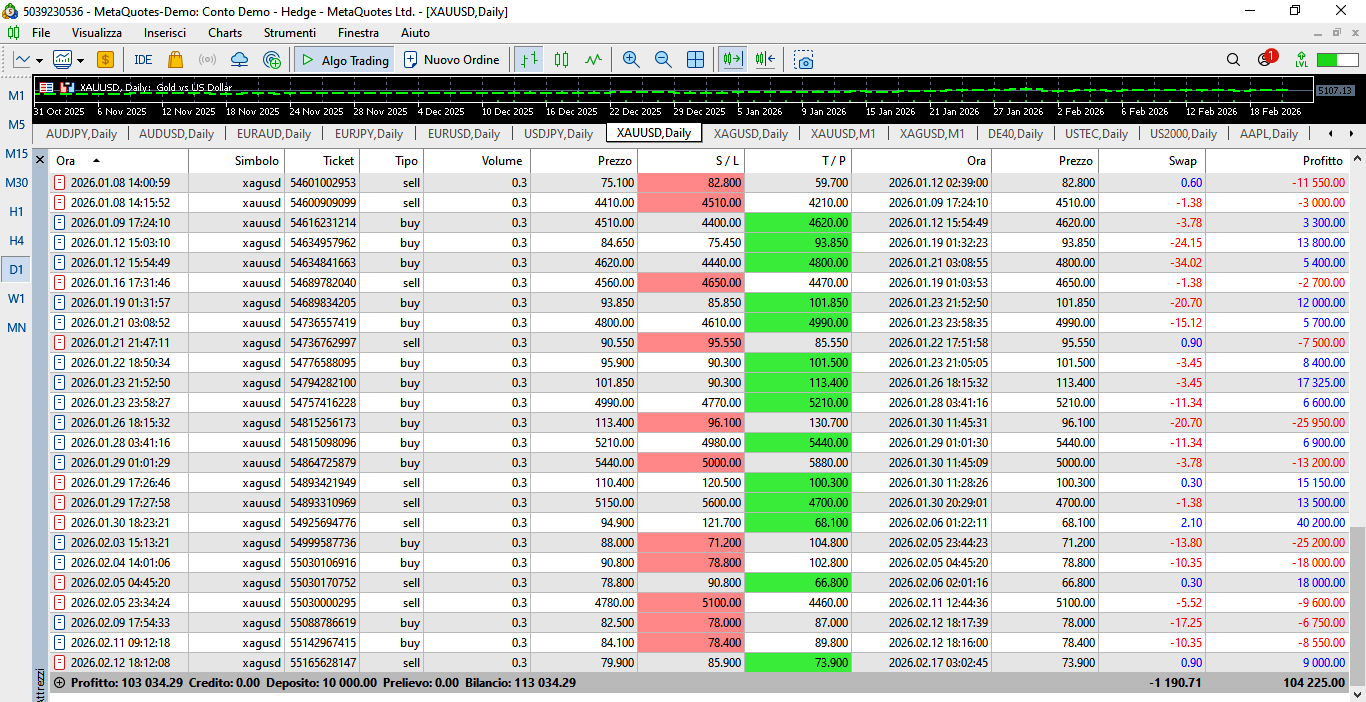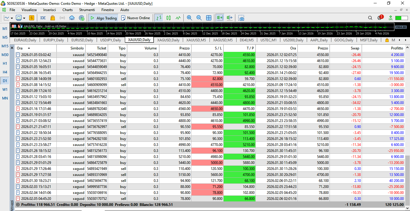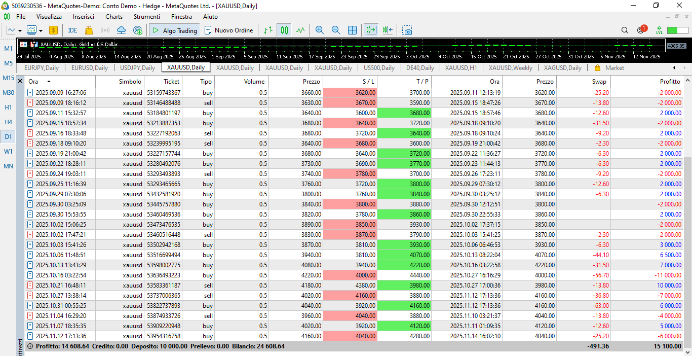 Economic Result achieved so far by the GOLD TRADING SYSTEM through a demo account - opened on 2025.08.18 - with an initial capital of $ 10,000: