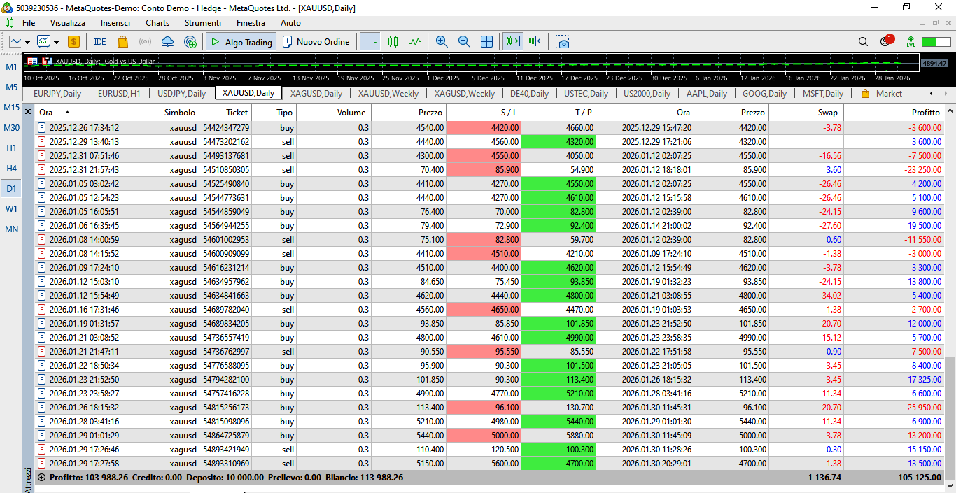 From 2025.12.01 this Trading System also includes trading on Silver.